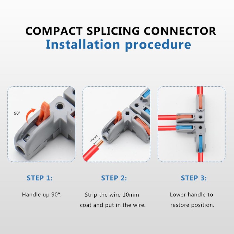 - ·[Easy to Use]:Wire connector is easy to use, strip the wire 10mm shell, push the handle up, put the wire in, restore the handle. Save you a lot of time and effort.