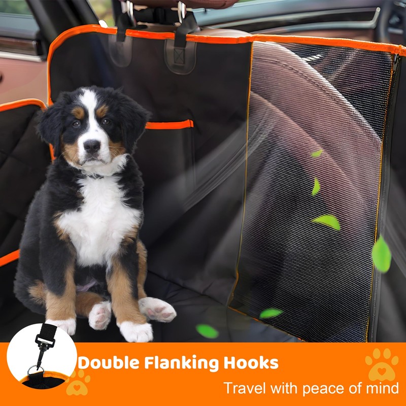YQSZWJ 600D Waterproof Dog Car Seat Cover - Heavy Duty Scratch Proof Pet Hammock for Back Seat w/Mesh Window, Storage Bag & Seat Belt, Non-Slip for SUV/Truck/Sedan