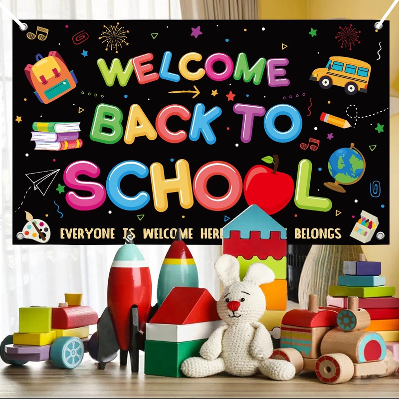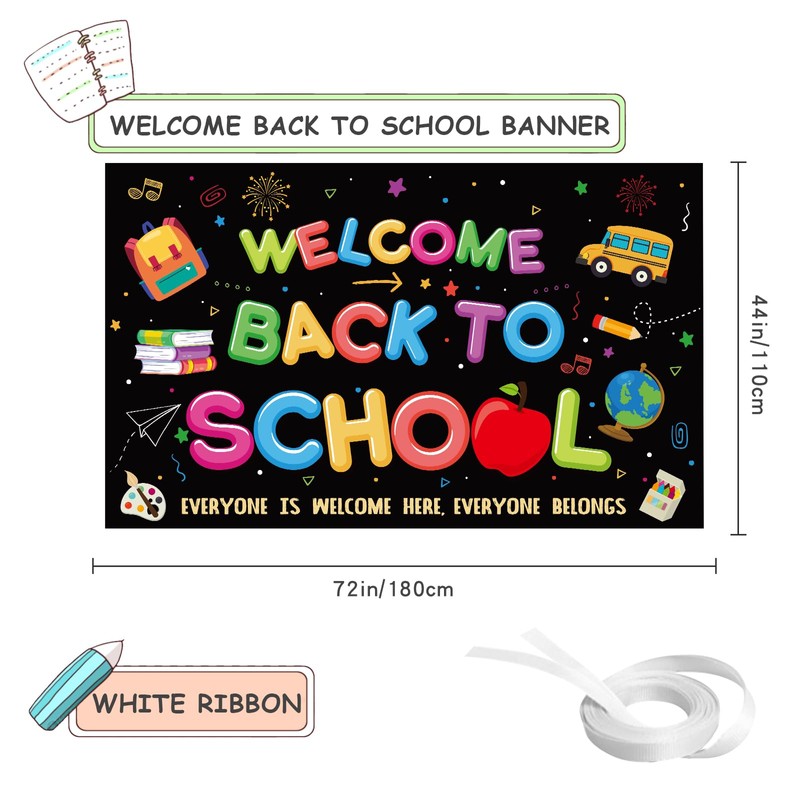 - XTRA LARGE: If you're in search of distinctive back to school supplies, our Black welcome back to school banner is the perfect choice! This back to school banner boasts an impressive size of 72x44 inches, making it extra large and ideal for decorating your classroom decorations. Its size also makes it a fantastic backdrop for taking photos, adding an extra layer of joy to back to school party.