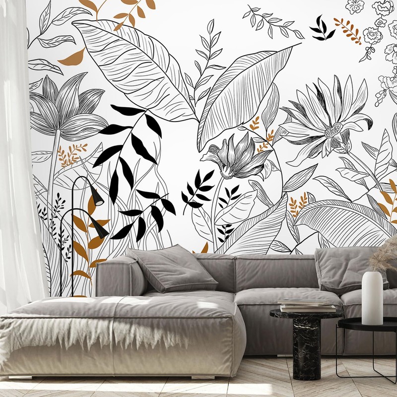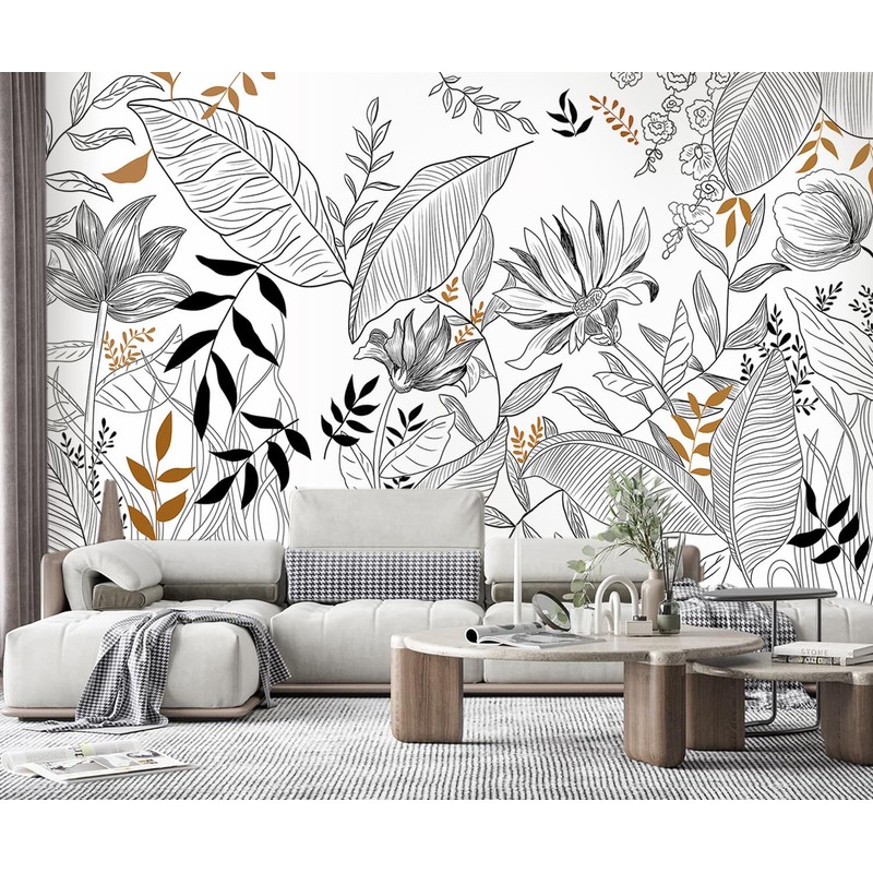 YQWDMX -Hand-Painted Flower Plant Fabric Wallpaper Simple Art Living Room 100" x 65" (Not Peel and Stick)