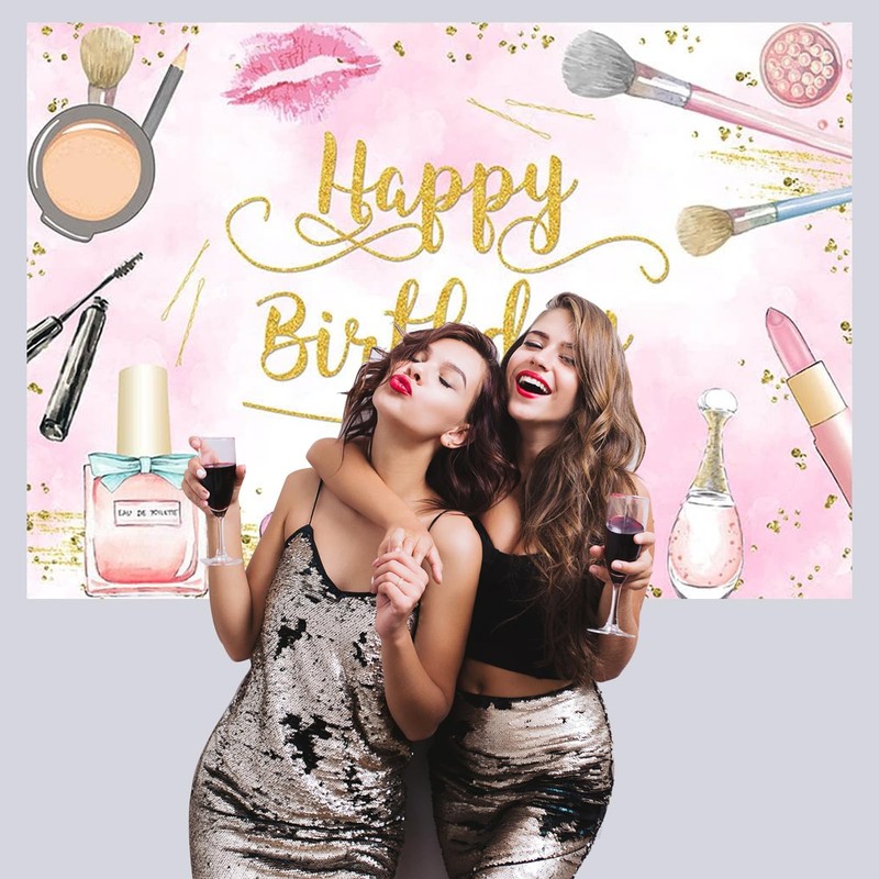 - Makeup Birthday Party Decorations: This makeup birthday backdrop is designed with spa make up theme party elements, such as cosmetic, makeup brush, perfume, bag, gold giltter happy birthday sign and more, which will add fun atmosphere to you make up party.
