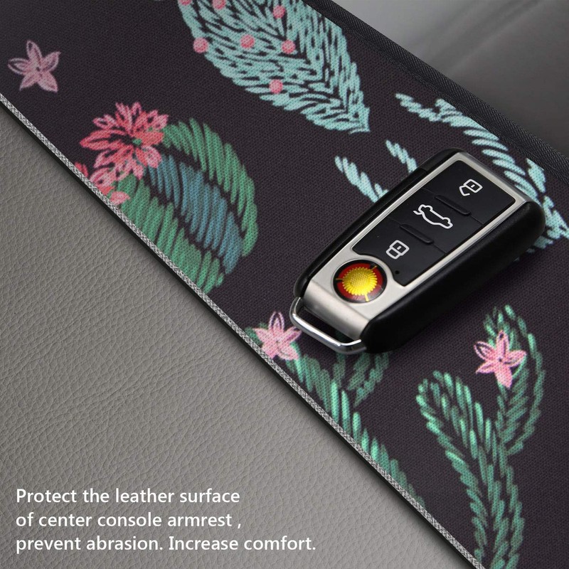 YR Vehicle Center Console Armrest Cover Pad, Universal Fit Soft Comfort Center Console Armrest Cushion for Car, Stylish Pattern Design Car Armrest Cover, Cactus