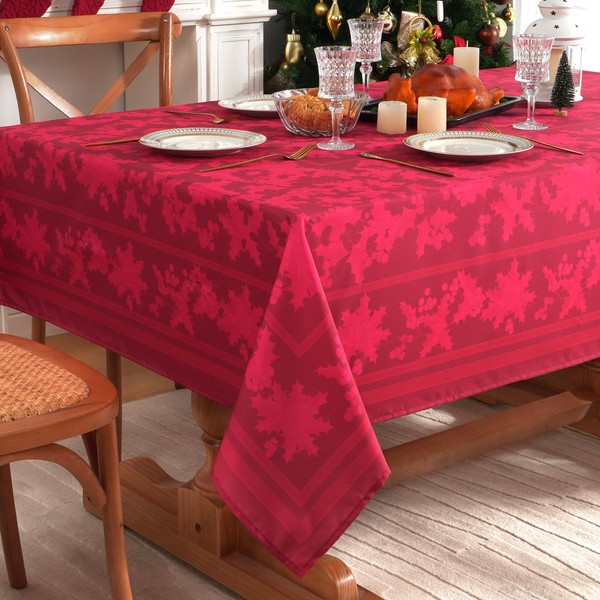 - High-quality material: this Christmas holly tablecloth is made of waterproof polyester. Soft, stain resistant and washable. The tablecloth is a great way to protect dining tables from dripping candle wax, juicy stains and occasional scratches. You can turn any dining experience into a magnificent feast.