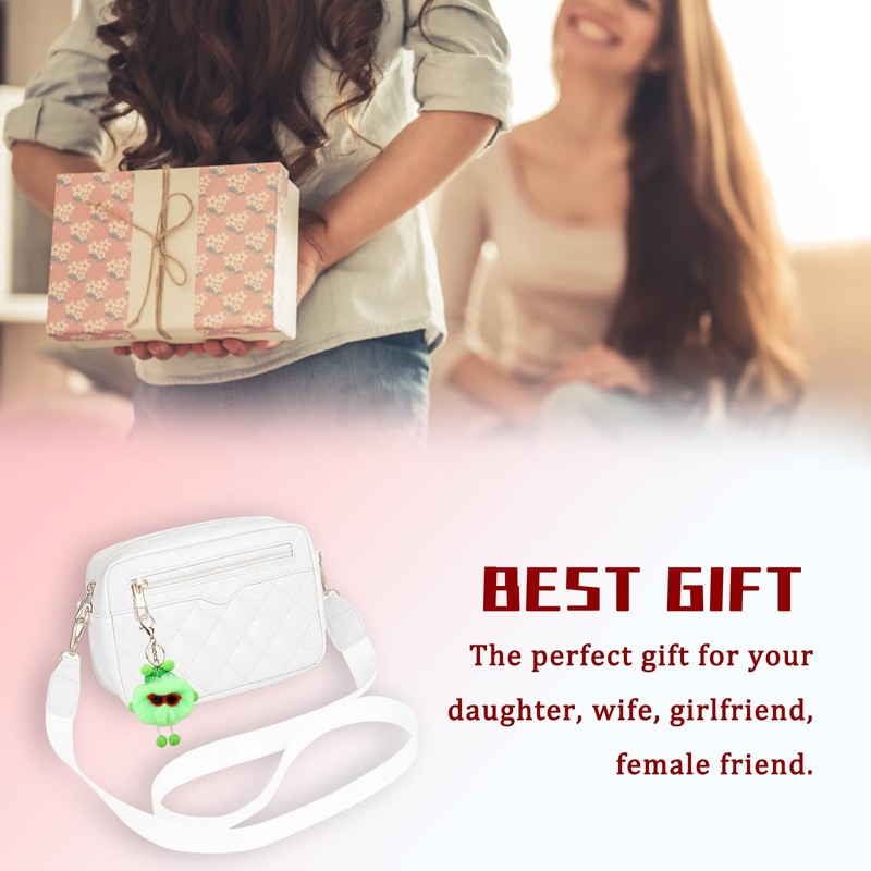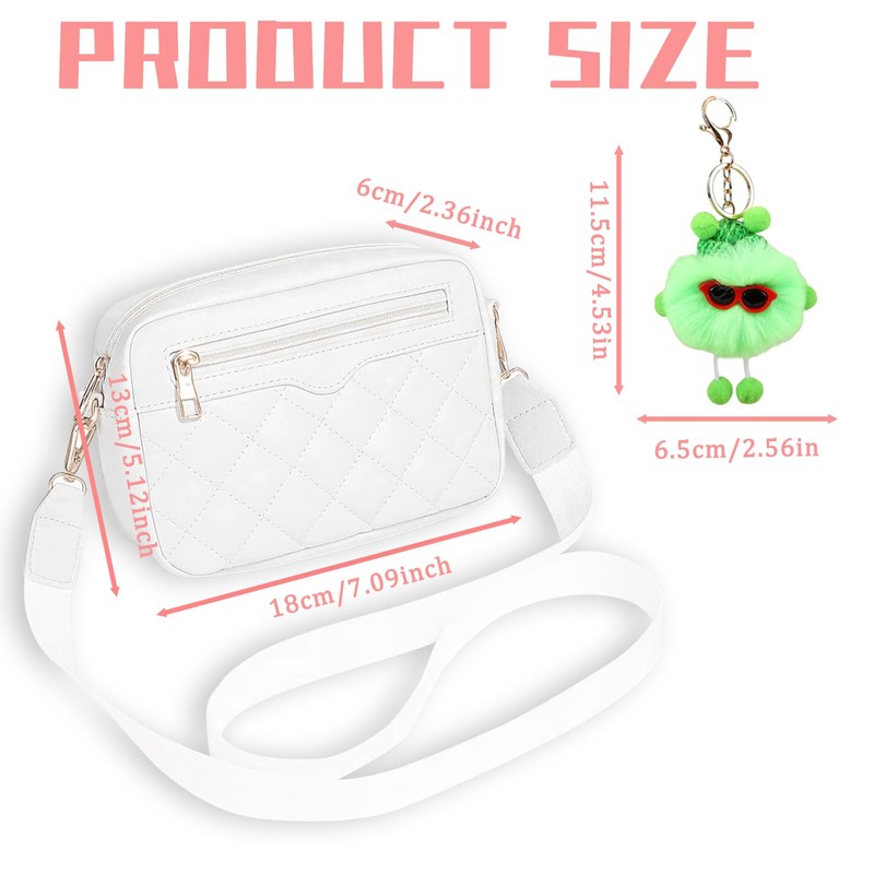- Stylish Design: This white crossbody bag for women features a sleek and modern look, perfect for daily use and travel; The included coal ball keychain adds a unique touch to your outfit