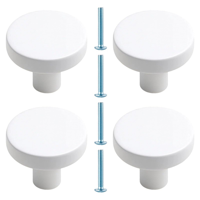 YREYBN White Cupboard Knobs, 4-Pack Small Drawer Knobs for Kitchen Cabinet Upgrading, Single Hole Cupboard Handle, Wardrobe Handle Replacement, Furniture Makeover, Easy to Install