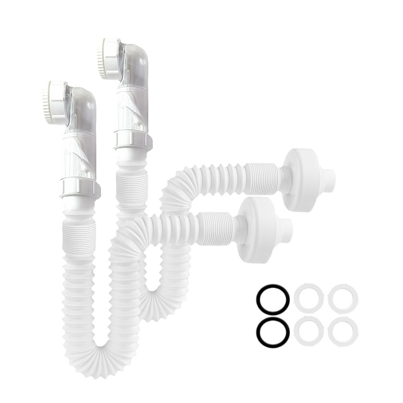 Yrichtra 2 Sets 1 1/4 Inch Siphon, Space-Saving Siphon Washbasin, Adjustable Siphon Sink, Odour-Proof Flexible Drain Hose, Replaceable Waste Water Pipe, White