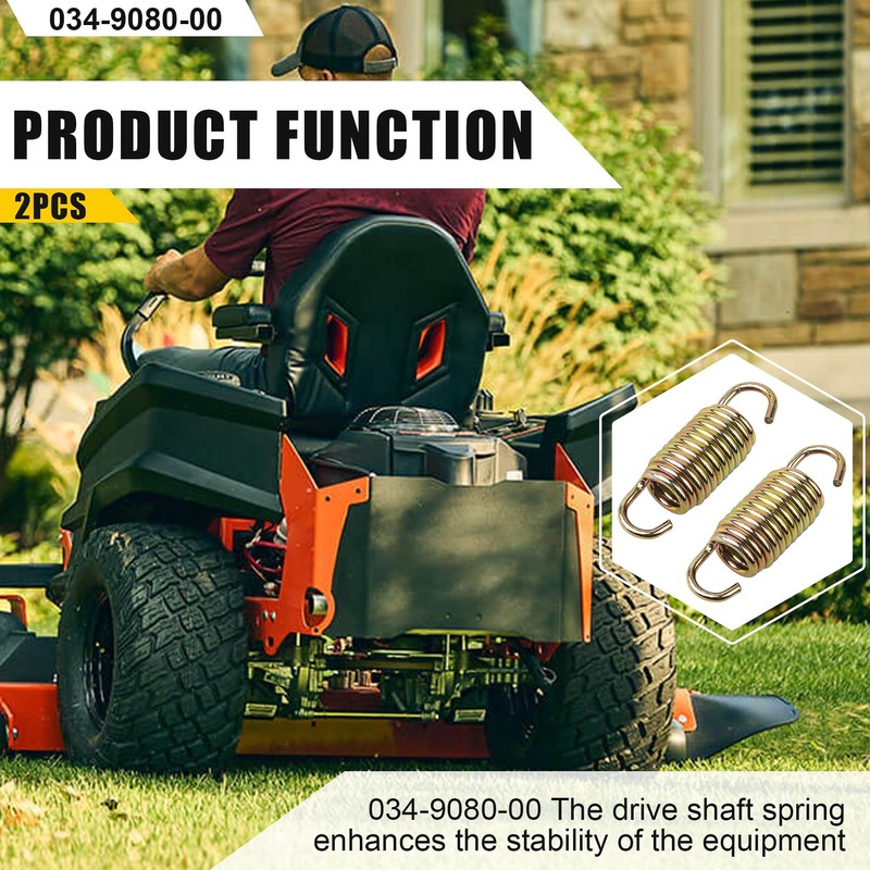 - Product Function: 034-9080-00 The drive shaft spring enhances the stability of the equipment, reduces the vibration of the mower when working on complex terrain (e.g., slopes, bumpy roads), and improves the smoothness of operation.