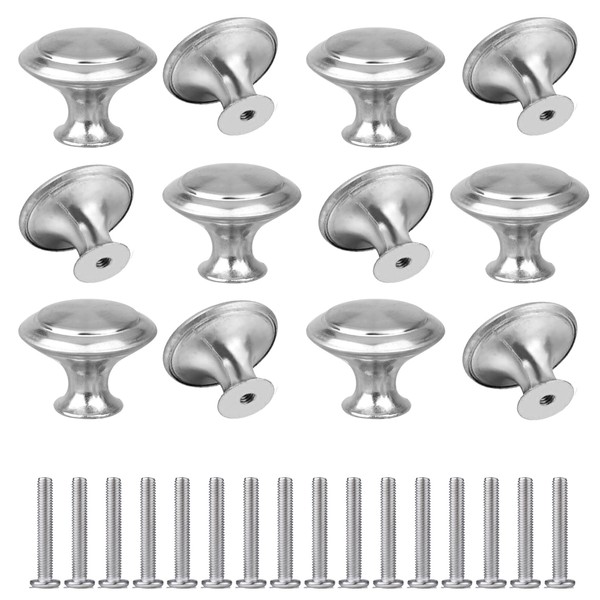 YSDMY 12 Pcs Silver Round Cabinet Door Knobs,30mm Cupboard Handle,Drawer Knobs with Screws,Drawer Pull Handle, Cupboard Drawer Wardrobe Handles Kitchen Door Handles Steel Furniture knobs for Drawers