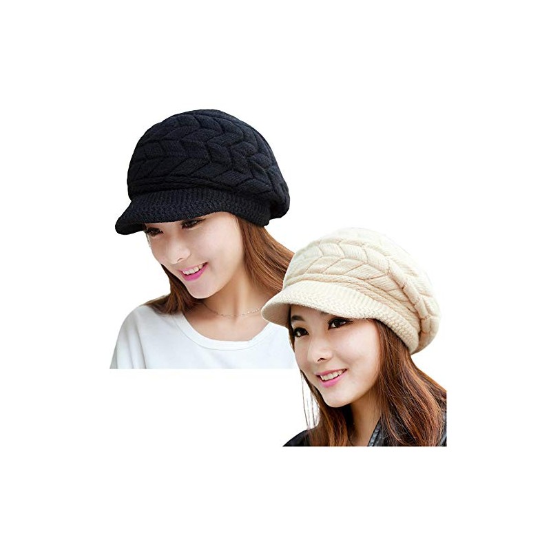 YSense 2 Pack Women Winter Warm Knit Hat Slouchy Beanie Cap with Visor