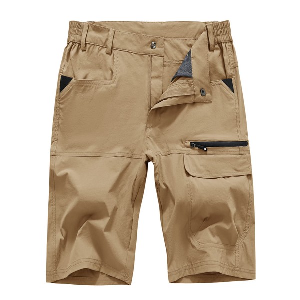 YSENTO Men's Golf Cargo Shorts Relaxed Fit Quick Dry Hiking Work Shorts 5 Pockets Khaki Size 30