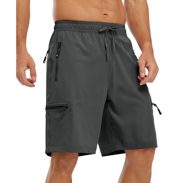 YSENTO Mens Hiking Cargo Quick Dry Shorts Lightweight Outdoor Walking Work Shorts with Zip Pockets(Dark Grey,M)