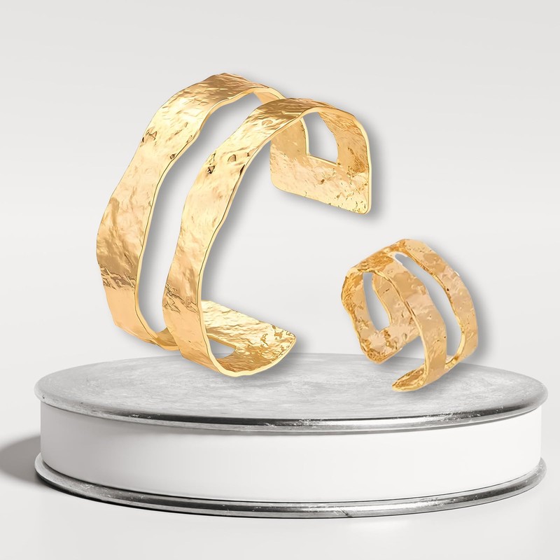 - Premium Craftsmanship: Each gold bangle undergoes meticulous electroplating for lasting luster. The reinforced base material maintains structural integrity while allowing gentle flexibility. Unlike ordinary bangles that lose shape, our hammered surface pattern cleverly disguises minor wear while catching light beautifully.