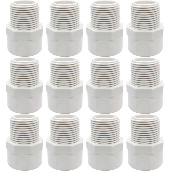 YSIL PVC Fitting 1 Inch 12 Pack, PVC Pipe Male Adapter, White