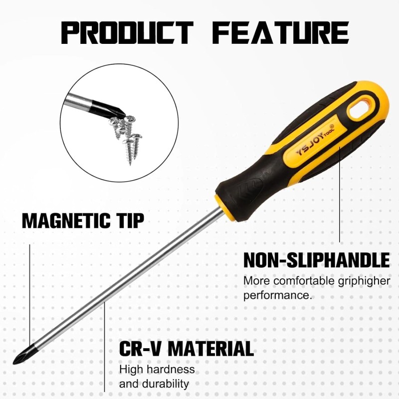 YSJOYTOOL 14-Piece Magnetic Screwdriver Set, 5 Phillips and 5 Flat Tips with ...