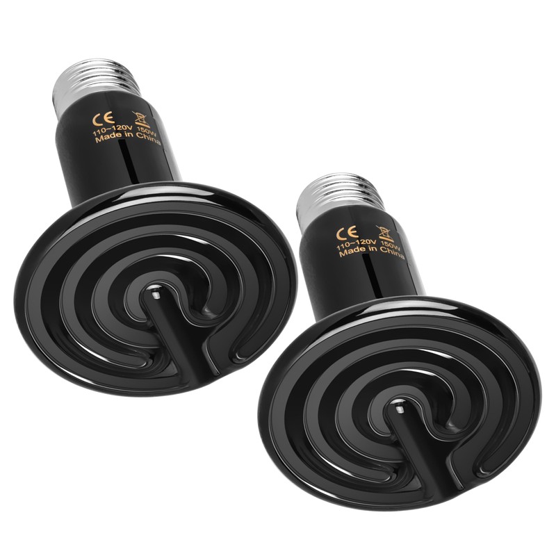 - Specifications: 150W 110-120V 2 pack; for use in standard E26 lamp base; 75mm diameter, 100mm length. Note: High surface temperature, please do not test temperature using your hands; please adjust the spacing between lamp and your pets, too close will case overheating the habitat; keep distance from flammable materials.