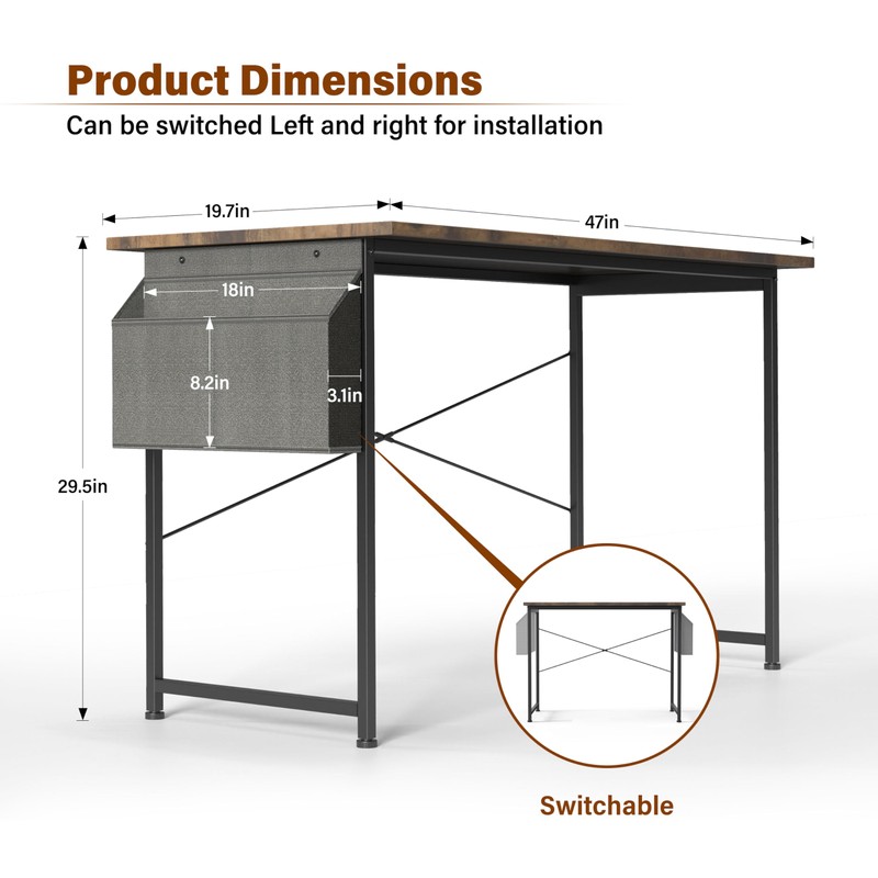 • Small Desk Panel Dimension: 47inch(L) x 20inch(W) x 30inch(H). This small 47inch computer desk fits small corner of the room perfectly and offers plenty of leg room for rest and storage. You’ll be surprised by sufficient working room the small desk provides.