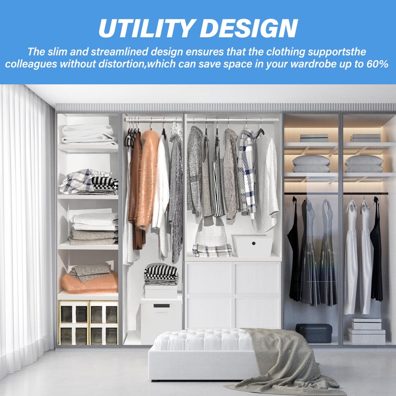 - Space Saving Design: Our ultra-thin hangers design, which are only 0.2 inches (0.5cm) thick, take up 30% less space than wooden hangers, making them a great option for maximizing closet space, rest easy knowing your garments won't get crushed or wrinkled.