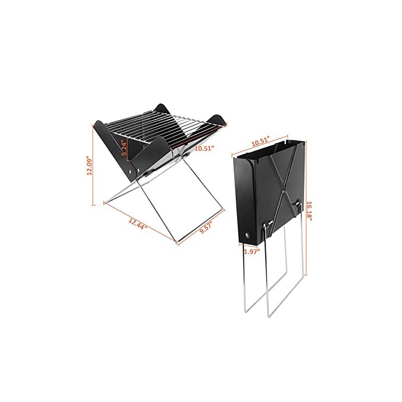 • Foldable & Portable: The charcoa grill folding compact but sets up in seconds or less. This barbecue grill is not only foldable, but also small and lightweight, which is particularly easy to carry. It can be folded into ultra-thin, saving space, and it is very suitable for storing this lightweight foldable grill in very small kitchens, trunks, outdoor occasions, or even to put in your bag, as it is easy to carry to anywhere.