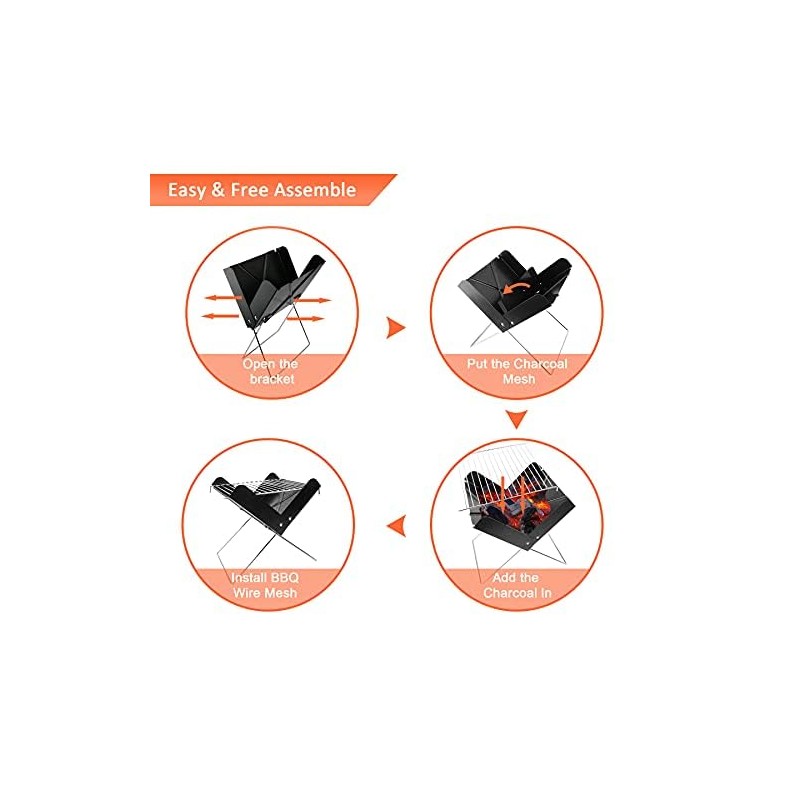 • Reasonable Design: This barbecue grill is easy to install and disassemble as no tools are needed while assembling, and it is especially convenient to carry. When the foldable charcoal grill is unfolded, the portable charcoal forms a triangular feet support to maintain stability when used on the ground. The lightweight folding foot design is convenient for transportation and Store. Therefore, you can enjoy the fun of barbecue anytime, anywhere.