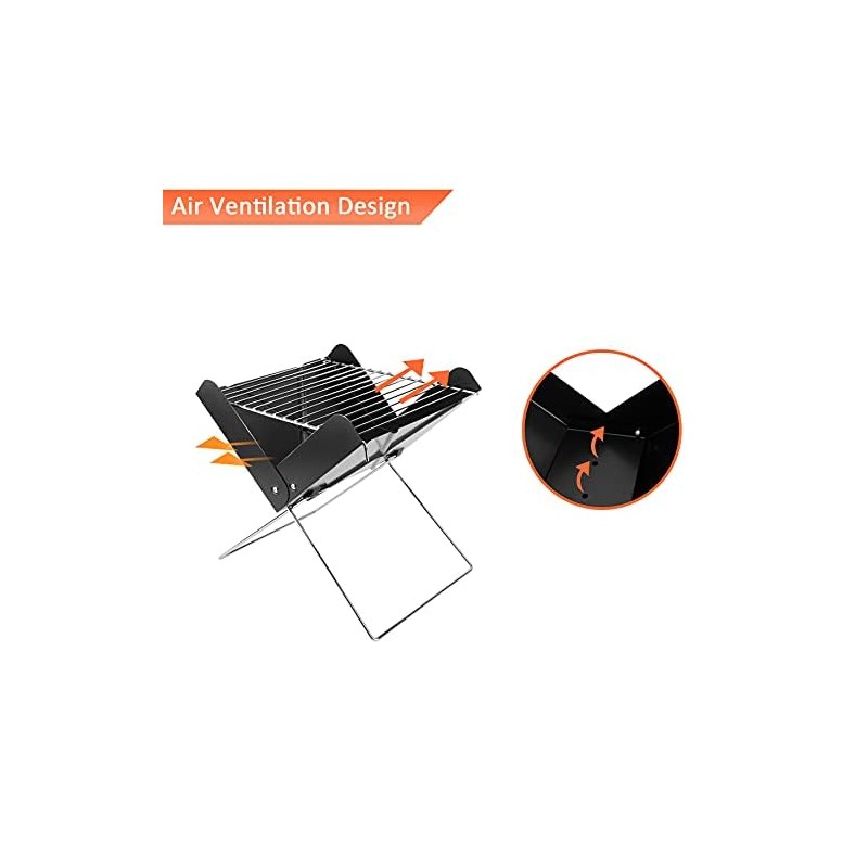 The YSSOAr's barbecue grill is easy to install and disassemble as no tools are needed while assembling, and it is especially convenient to carry. When the foldable charcoal grill is unfolded, it forms a triangular feet support to maintain stability when used on the ground. The lightweight foldable design is convenient for transportation and Store. Therefore, you can enjoy the fun of barbecue anytime, anywhere. This barbecue grill is not only foldable, but also small and lightweight, which is particularly easy to carry. It can be folded into ultra-thin, saving space, and it is very suitable for storing this lightweight foldable grill in very small kitchens, trunks, or bringing it to outdoor occasions, as it is easy to carry to anywhere. With the unique design of air ventilation, it can boost the flowing of air and the burning of charcoal would be incredibly faster, which speeding up your outdoor grill. If times get tough, this charcoal grill is ready to enhance your outdoor cooking. There are no worries to clean the BBQ grill after using it. You can just simply detach the charcoal grill easily and give it an omnidirectional cleaning.