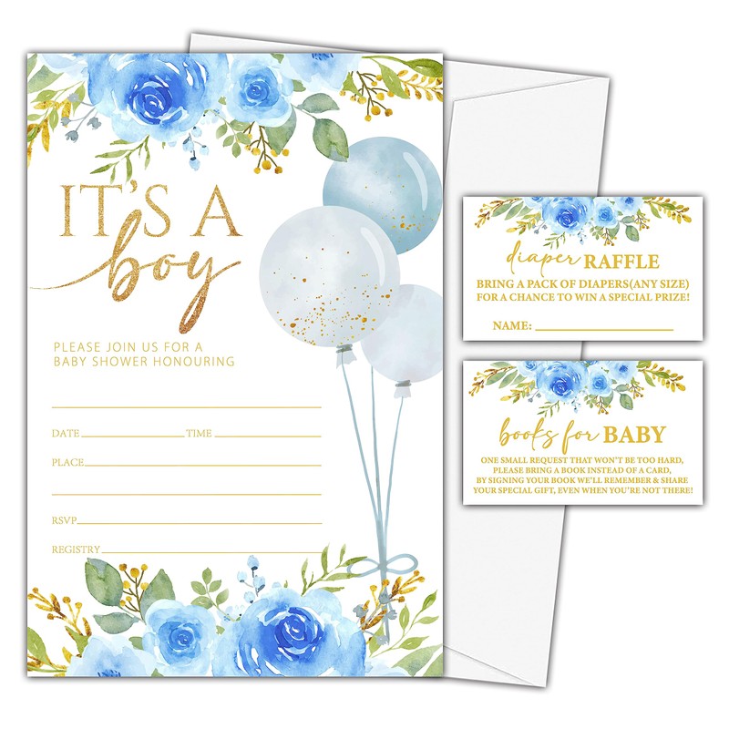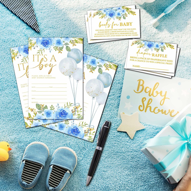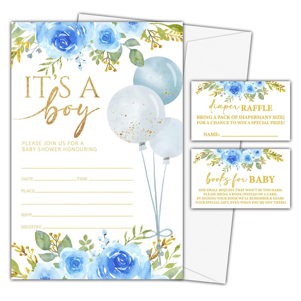 YSTEP 25 Set Baby Shower Invitations with Envelopes Diaper Raffle Tickets and Book Request Cards,It's a Boy Baby Shower Party Decorations Supplies Favors- A01
