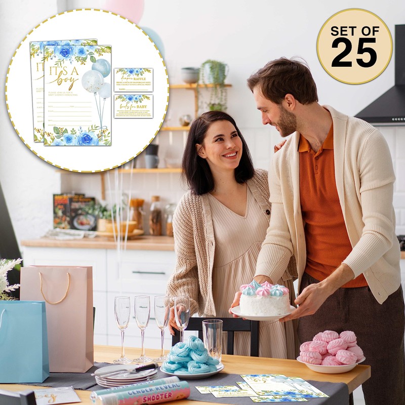 - Quantity: The pack includes 25 baby shower invitations, 25 diaper raffle tickets and 25 book request cards.