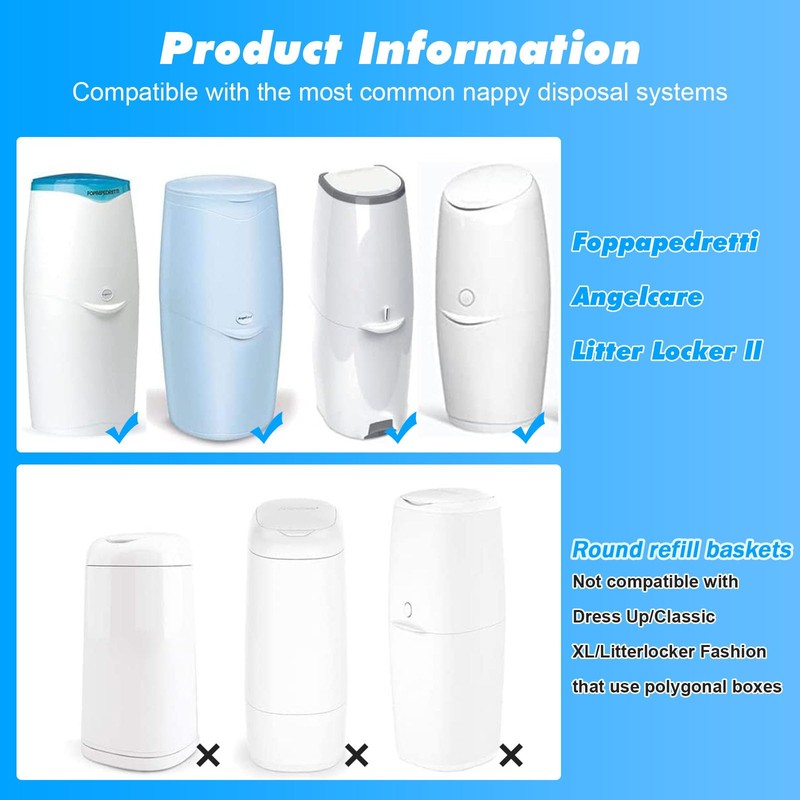 - 100% compatible: refill cassette fits into the standard nappy bins and is compatible with Angelcare Comfort Plus nappy bins and Tommee Tippee refill cassettes for Simplee Sangenic nappy bins. (Please check your nappy bin type before purchasing)