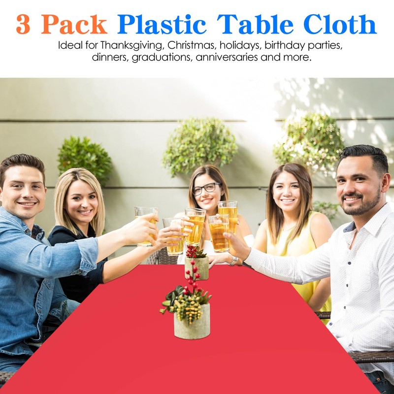 YSYJ 3 Pack Red Plastic Tablecloth Disposable Rectangular Table Cloth 54 x 10...