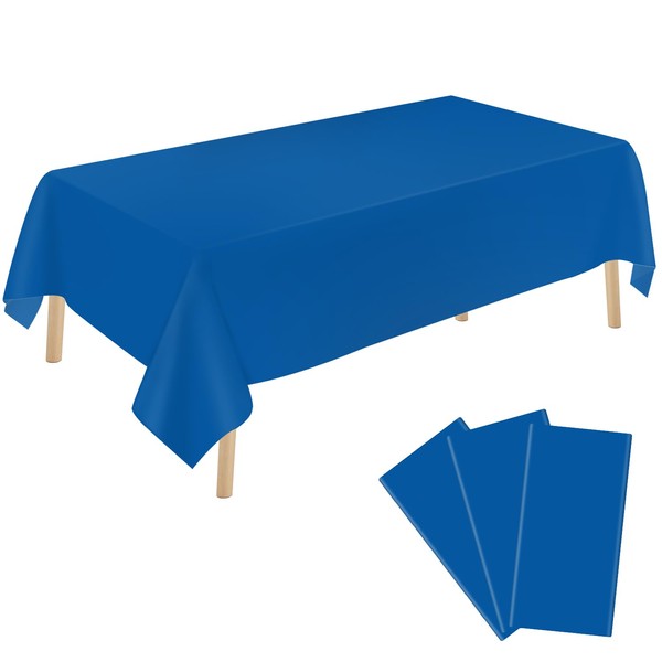 YSYJ 3 Pack Royal Blue Plastic Tablecloth Disposable Rectangular Table Cloth 54 x 108 Inch Table Cover for Parties