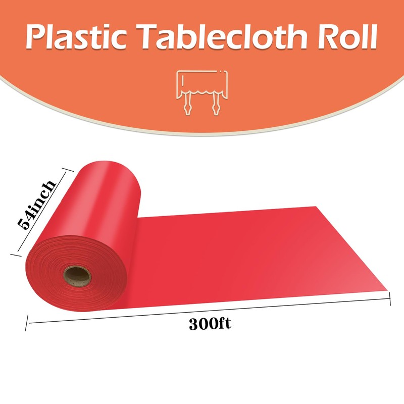 - Disposable Table Cloth Roll: These plastic tablecloths are made of premium material. 54 inch x 300 feet table covers meet your party needs. The box is designed for easy storage.