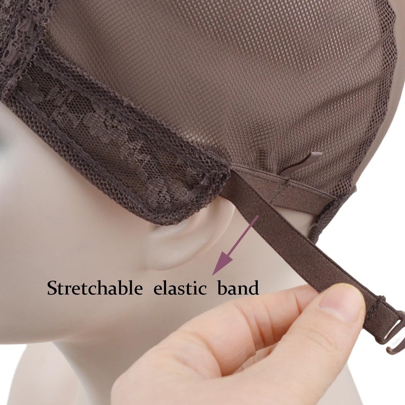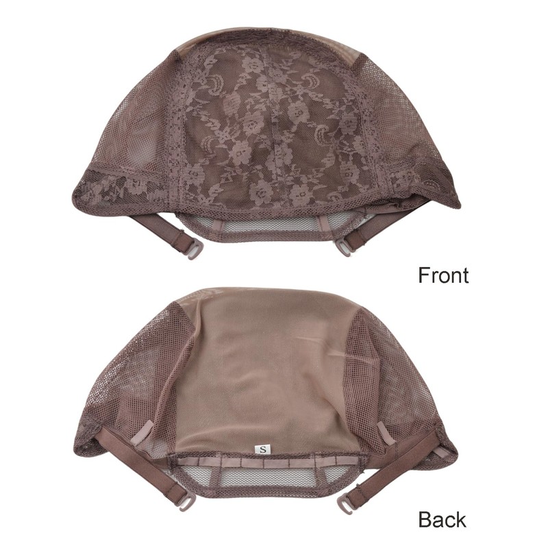 YTBYT 2 Pcs Double Lace Wig Caps with Adjustable Straps Swiss Lace Hairnet on the Back for Making Wig (Brown M)