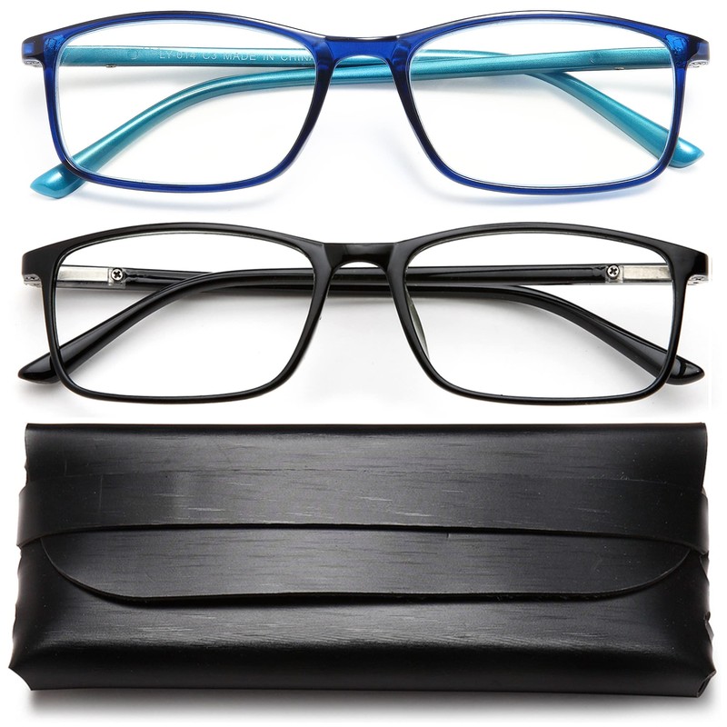 - [PACKING INCLUDES]2 Pairs reading glasses colors are black and blue + 1 Beautiful glasses case + 1 High-grade glasses cloth.