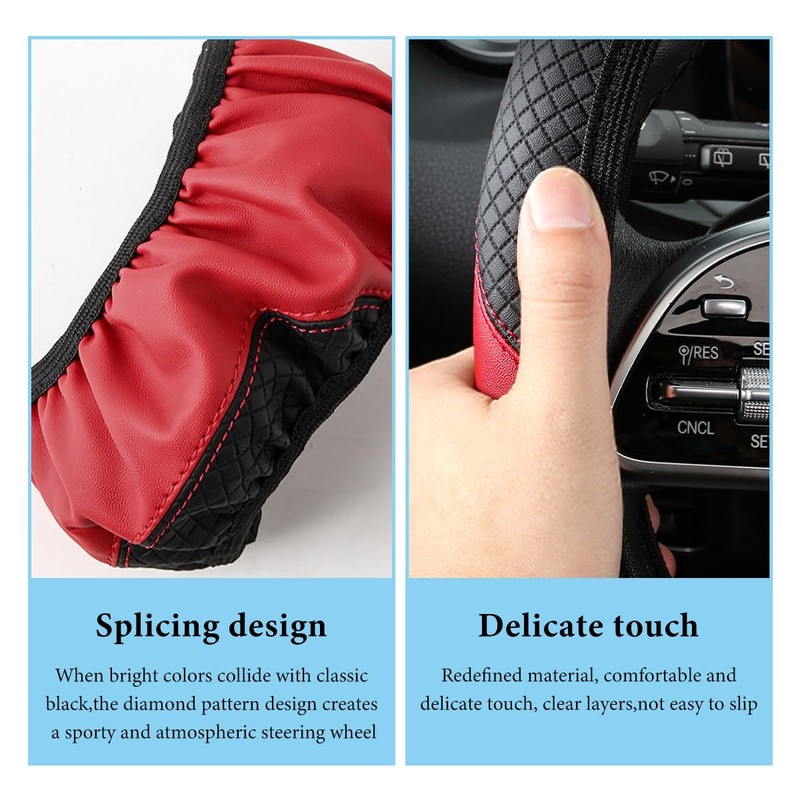 - Exquisite Appearance: The bright-colored leather looks brilliant and distinctive with the classic base color, breaking up the dullness of the original car's interior. The diamond pattern is skillfully incorporated to outline the sporty and elegant style, adding fashionable vitality to the steering wheel