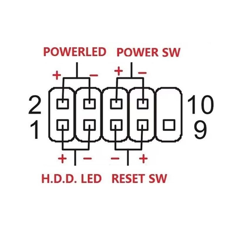 - Power Switch (Two Wire) Reset Switch (Two Wire) HDD LED (Two Wire) Power LED + (Single Wire) Power LED - (Single Wire)