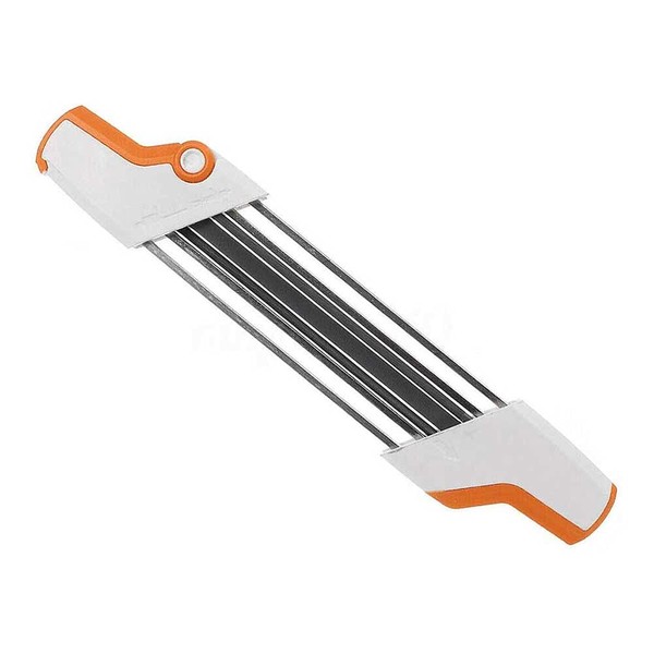 - Practical tool for quick and easy sharpening of teeth and depth gauge In a single action.