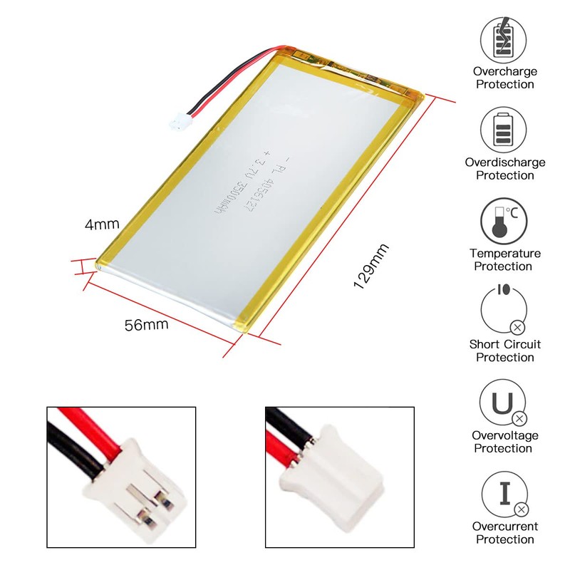 YTKavq 4056127 - Batería de ion de litio (3,7 V, 3500 mAh, iones de litio, ion de litio, 2 pH, conector de paso de 2,0 mm)