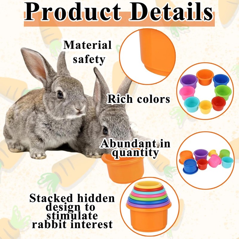 YTPAFK 8Pcs Stacking Cups, Rabbit Stacking Cups, BPA-Free Safe Plastic, Rabbit Toys for Hiding Food and Playtime Fun, Multi-Coloured and Various Sizes
