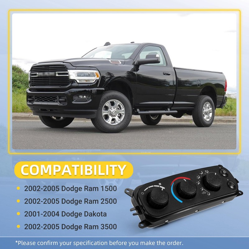 - 【Compatibility】599-212 A/C climate control module fit for Dodge: ①2002-2005 For Dodge Ram 1500; ②2002-2005 For Dodge Ram 2500; ③2002-2005 For Dodge Ram 3500; ④2001-2004 For Dodge Dakota.