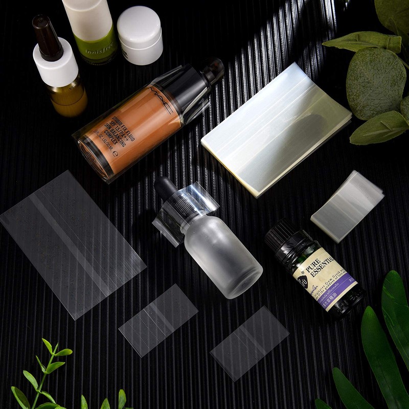 • 【Different Sizes for Different Usage】: shrink bands can be tailored to the length you want; The 3.43 x 2.17 inch shrink bands can be applied for bottle mouth and small size eye cream bottle, and the 1.77 x 0.90 inch shrink bands are designed for lipstick, nail polish, etc.; Simply put the heat shrink band on the bottle mouth, and then use the heat tunnel or hair dryer to blow it to the bottle mouth, simple and practical