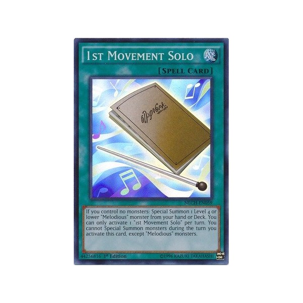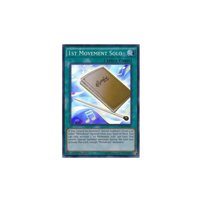 Card Text: If you control no monsters: Special Summon 1 Level 4 or lower "Melodious" monster from your hand or Deck. You can only activate 1 "1st Movement Solo" per turn. You cannot Special Summon monsters during the turn you activate this card, except "Melodious" monsters.