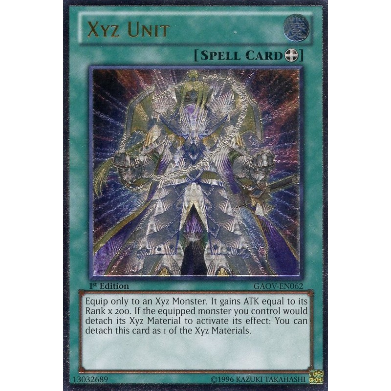 Card Text: Equip only to an Xyz Monster. It gains ATK equal to its Rank 200. If the equipped monster you control would detach its Xyz Material to activate its effect: You can detach this card as 1 of the Xyz Materials.