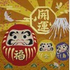 Yu-soku Furoshiki Wrapping Cloth Daruma Dolls on Gold Motif Japanese Fabric 50cm