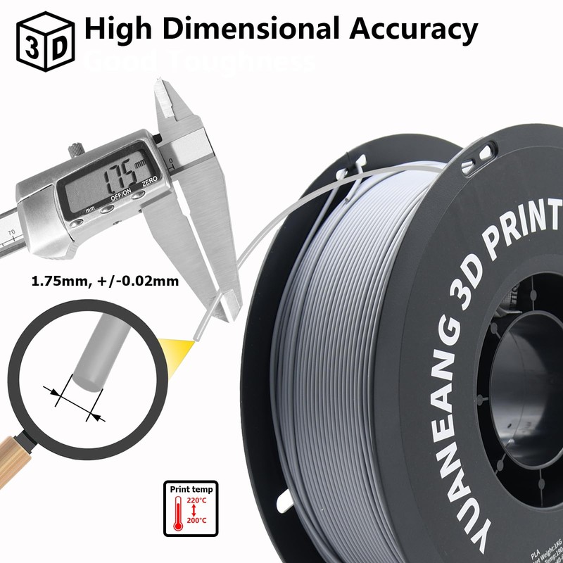 YUANEANG YUANEANG PLA 3D Printer Filament, Dimensional Accuracy +/- 0.02 mm, 1 kg Spool(2.2lbs), 1.75 mmGrey