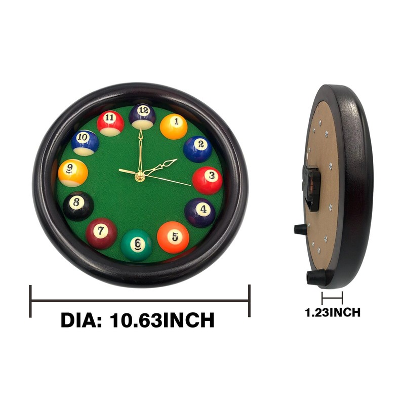 • This billiards clock is made from wood, durable and beautiful. The real cut in half balls with big billiard ball number makes this clock full of billiard art clock.