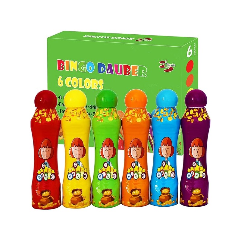 Yuanhe Bingo Daubers Dot Markers - 3 oz Paint Dotter Bingo Dabbers/Dobbers, Set of 6