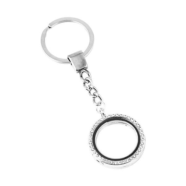 - ✨✨BEAUTIFUL DESIGN: This round floating glass locket keyring features a beautiful crystal design that encases a picture or memory inside polished glass.