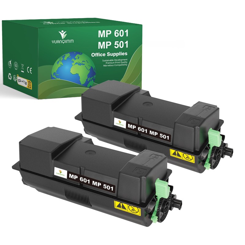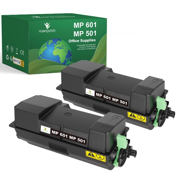 YUANQIMM Compatible MP 501 MP 601 Toner Cartridge (2 Black) 407823 Replacement for Ricoh MP 501 Toner Cartridge MP 601 for Ricoh MP 501SPF MP 601SPF SP 5300dn 5300 SP 5310dn Printer (25,000 Pages)