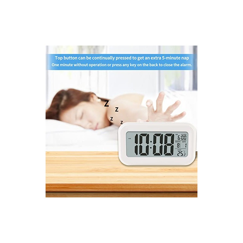 YUANRANER Digital Alarm Clock with Indoor Temperature, Battery Operated,Snooze Model,12/24H Display for Bedrooms Heavy Sleepers Kids Travel Bathroom Desk Smart Clock