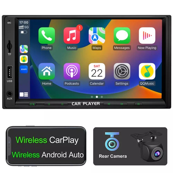 YuanTing 7" 2Din HD Touchscreen Car Stereo Player Apple CarPlay Android Auto Wireless GPS