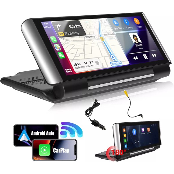 YuanTing Portable car Stereo Radio Carplay Android Auto GPS Media 6.86" Foldable Screen